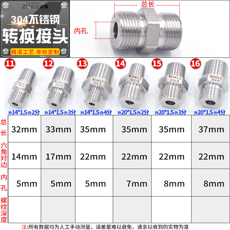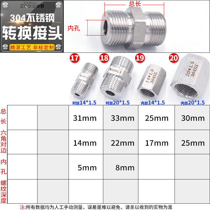 Pressure meter joint 304 stainless steel inside and outside conversion joint M20 * 1 5 14 * 1 5 turn 2 3 4 variable diameter succession