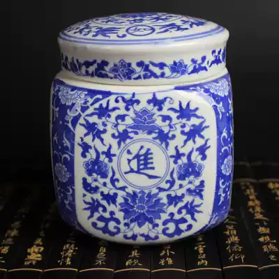 Jingdezhen porcelain blue and white porcelain cans, tea cans, covered, storage cans, Zucai Jin Bao