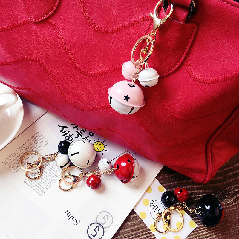 The large white key button otter rabbit fur ball jelly bell car keychain keychain package hanging piece hanging
