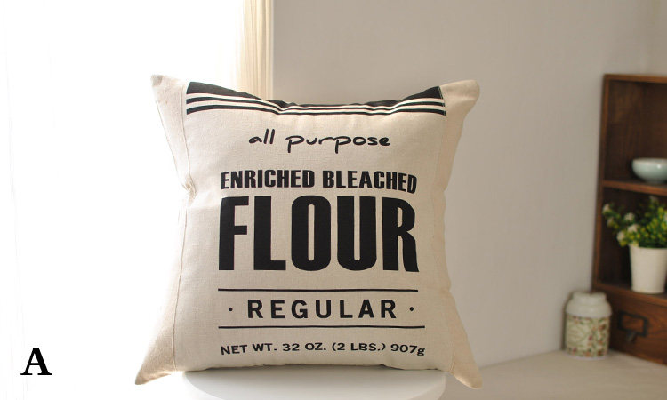 Retro cotton jumpy pillow Japanese style groceries English square pillow black and white letter waist pillow leaning against pillow sofa cushion with core