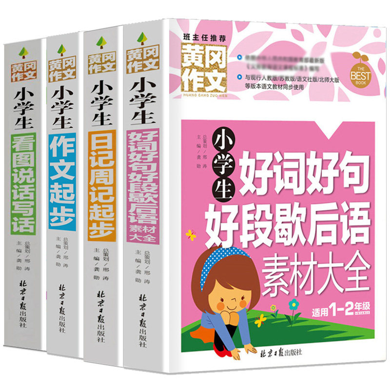 All 4 volumes 1-2 grades Huanggang composition book elementary school students look at pictures, speak and write words, diary weekly records start, composition start, good words, good sentences, good paragraphs, a collection of hysterical materials, a complete collection of synchronous writing documents