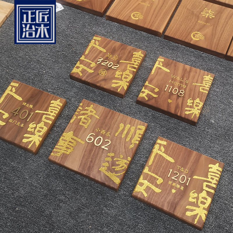 Black walnut solid wood card engraving Homestay house number customization Peace and joy listing wood carving wood engraving personality customization