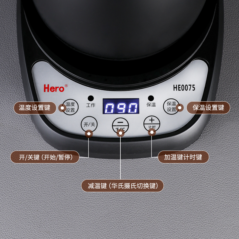 Hero electric hand punch temperature control pot household slender stainless steel hand punch coffee pot long mouth set electric coffee pot