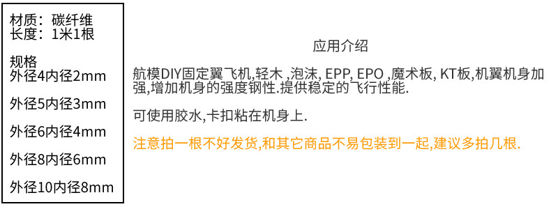 Aerial model fixed wing accessories Carbon fiber round 4X2 4X2 6X4 6X4 8X6 10X8 5mm wing reinforced carbon tube