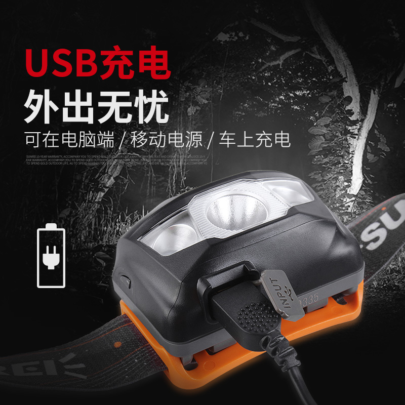 SUNREE Mountain Hynix Pleasing 3 Headlights Lithium Electric Rechargeable Bright Light Outdoor Fishing Light LED Waterproof High Brightness Far