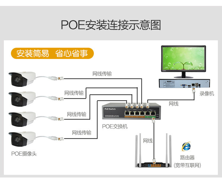4 port 5 port 8 port 16 port 24 port monitoring POE power supply switch Gigabit 100 Gigabit standard 48V network extension cable