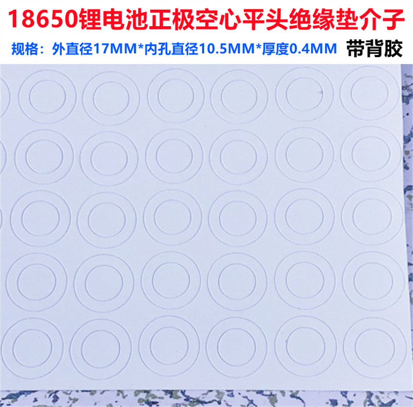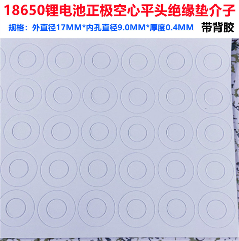 1 joint 18650 lithium battery positive electrode hollow flat head insulation gasket meson 18650 hollow barley paper insulation gasket
