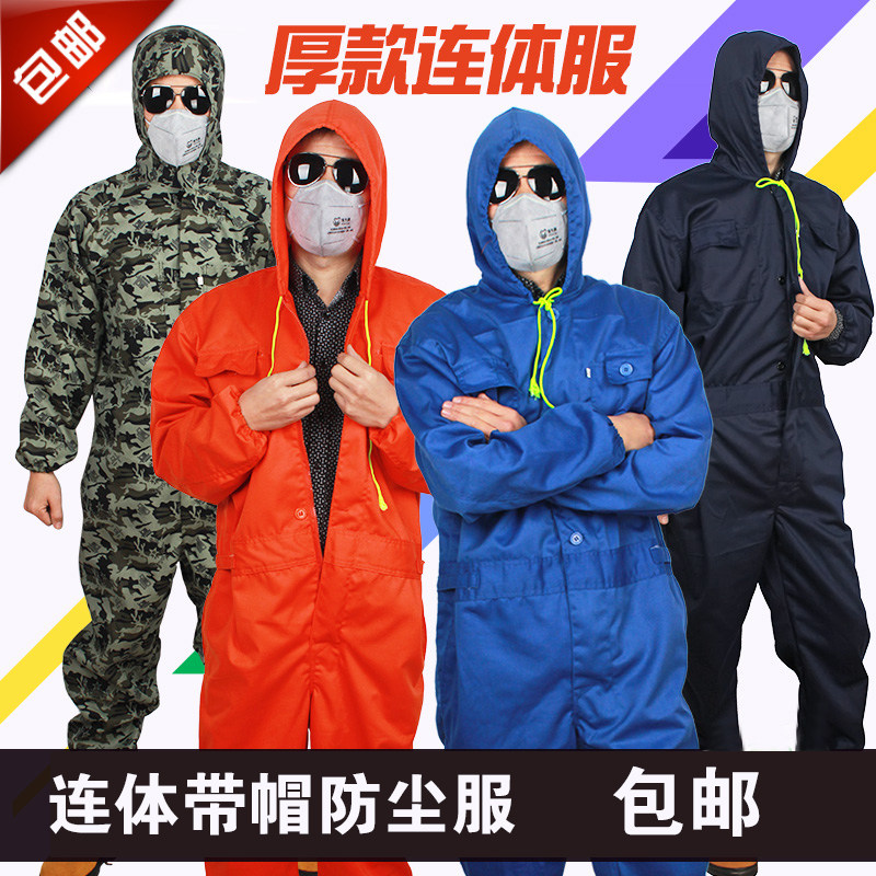 Summer one-piece overalls men's labor insurance jumpsuits hooded spray paint overalls women's protective clothing dust-proof clothing