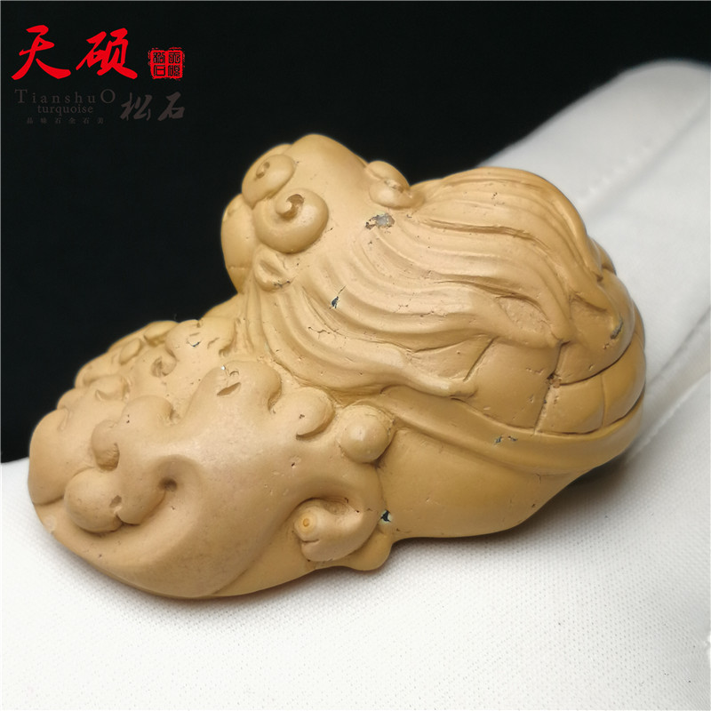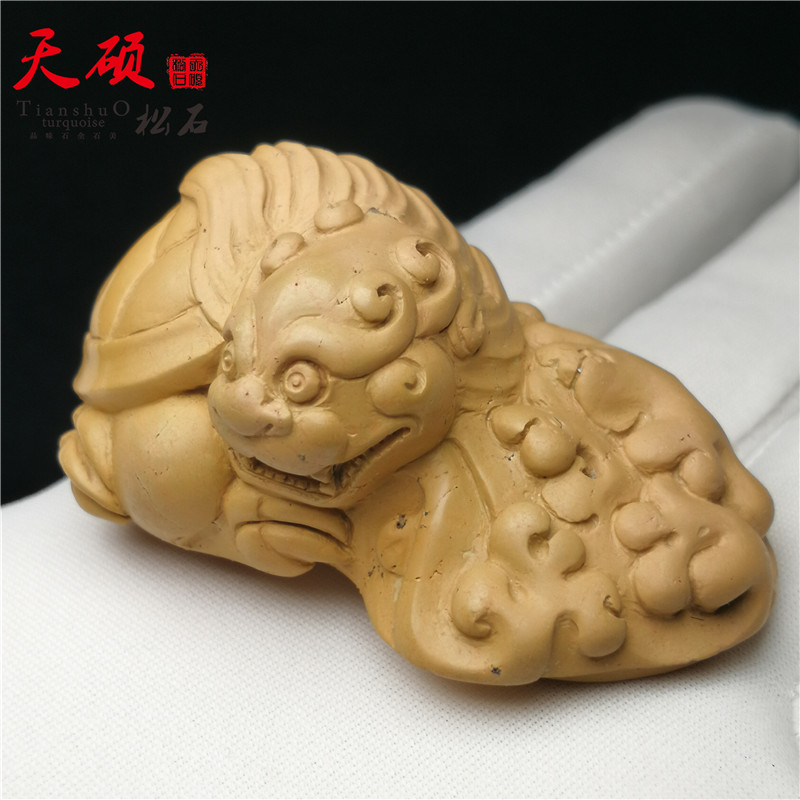 Hubei Shiyan natural no-optimised green pine stone yellow sculpted necklace wool coat pendant no glue No wax-free real handlebar piece-Taobao