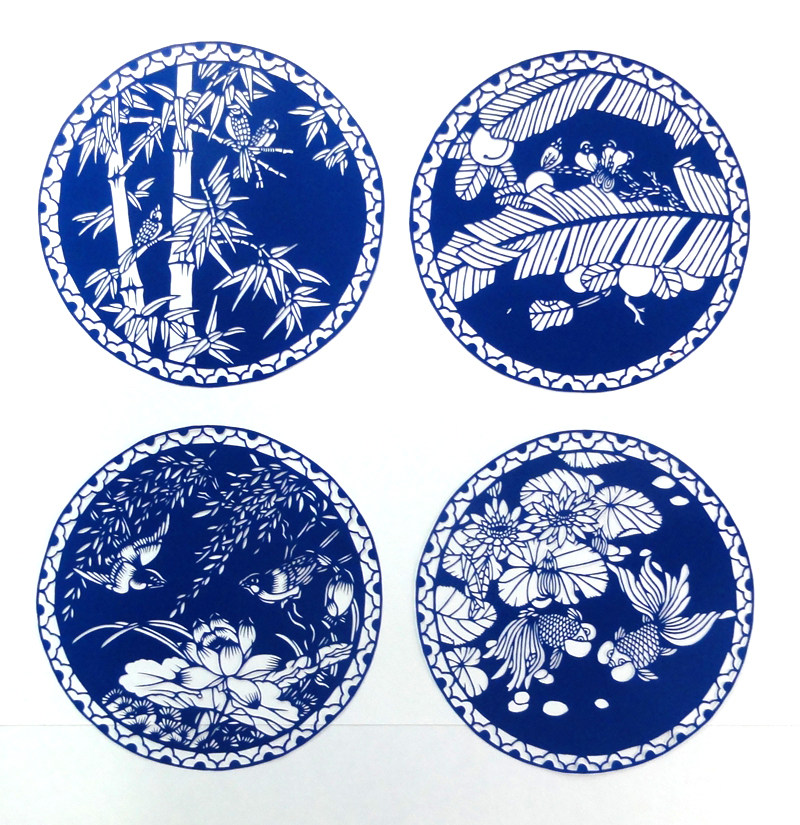 Red Treasure Blue Single Sided Blue Paper Red Peony Butterfly Blue Peony Butterfly Red Swallow 2 Blue Swallow 2