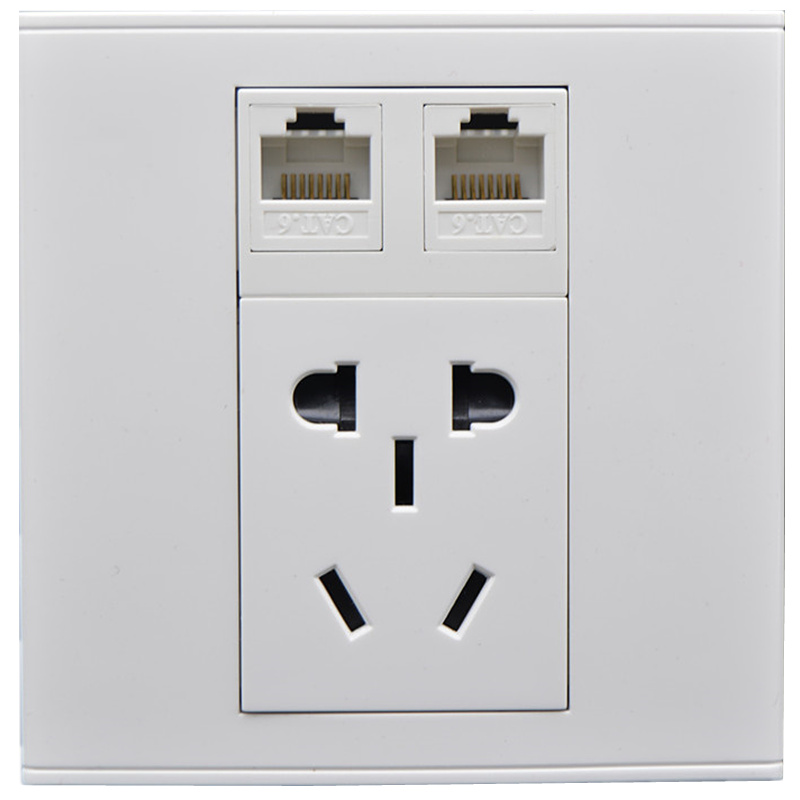 Type 86 Dual Category 6 Computer with Five-hole Power Socket