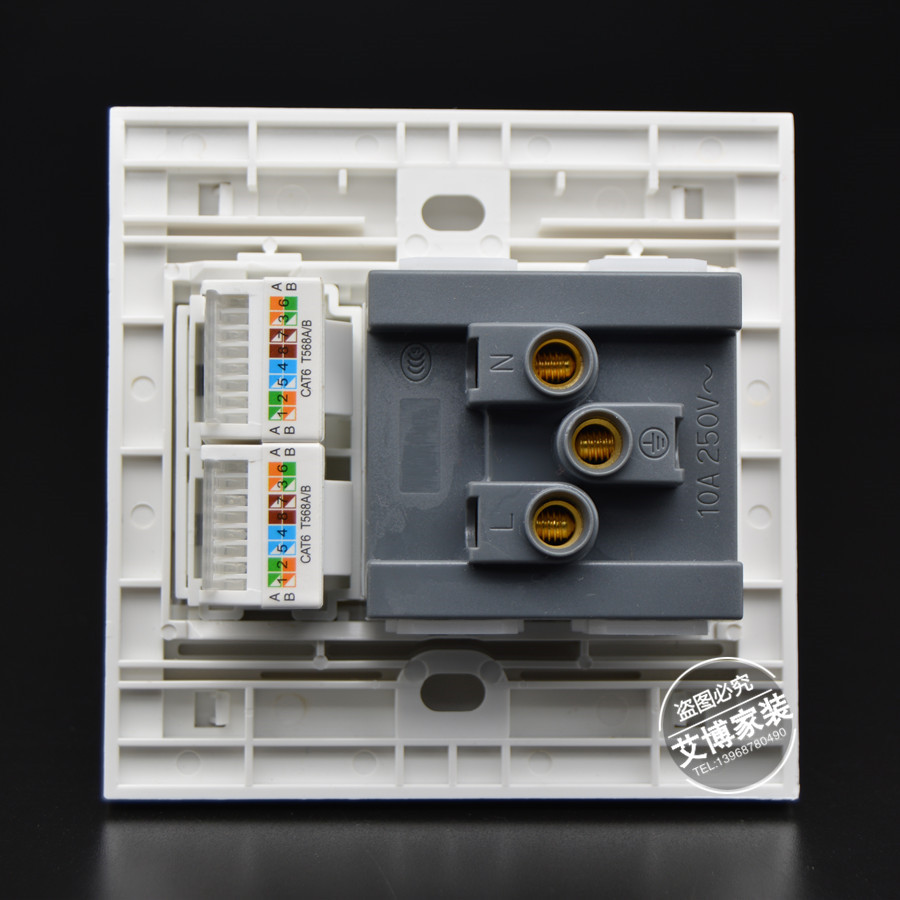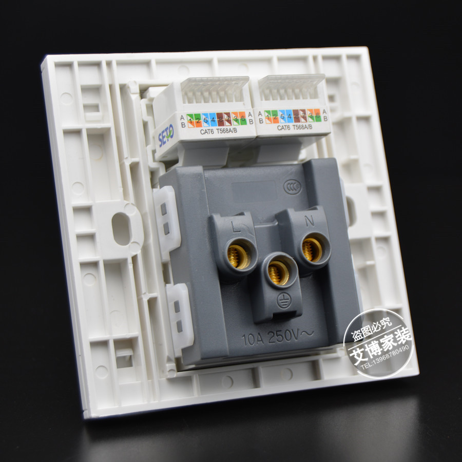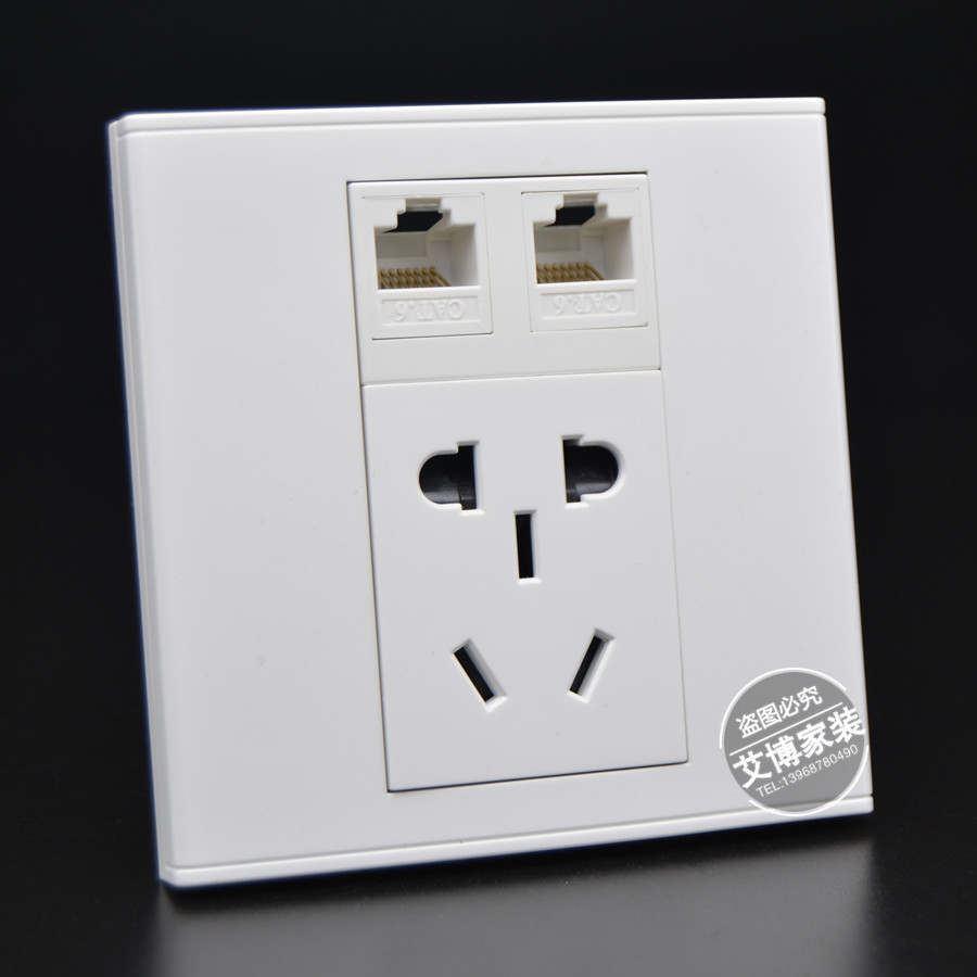 86-type network line power wall socket 2 CAT6 Gigabit six-type computer national standard five-hole panel