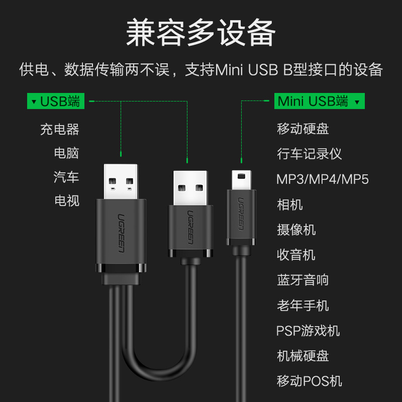 Green Union mini usb data line double head T type mouth hard disc connection line mini USB line MP3 charging line
