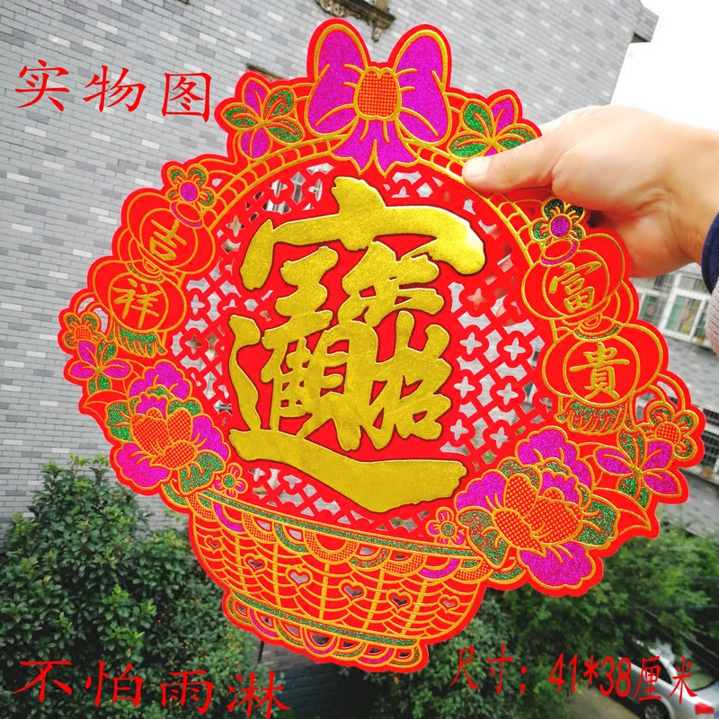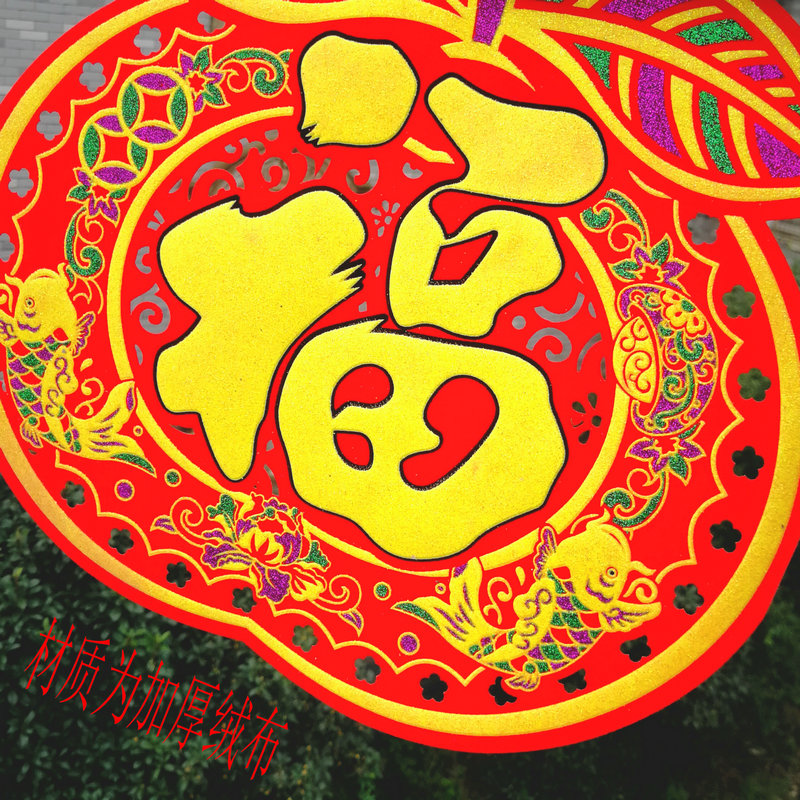 Suede Boufu Character Collage of Hot Golden Foe Bags Yuanbao Flower Baskets for the Spring Festival New Year's New Year's Bamboo Hat Square Door Sticker