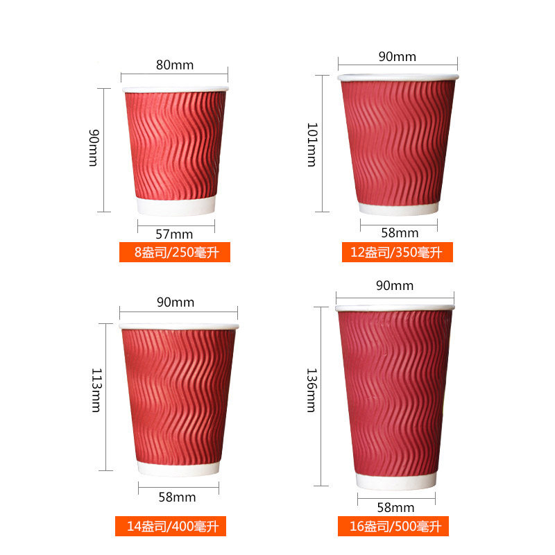 Disposable thickened paper cup coffee hot drink anti-scalding S-shaped soy milk cup milk tea corrugated paper cup with lid