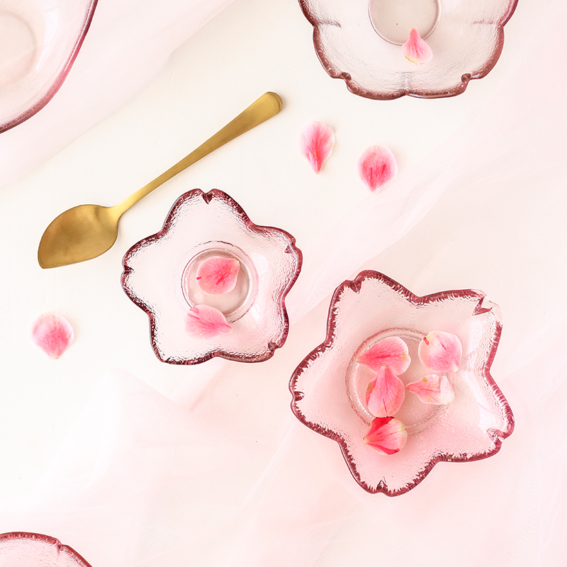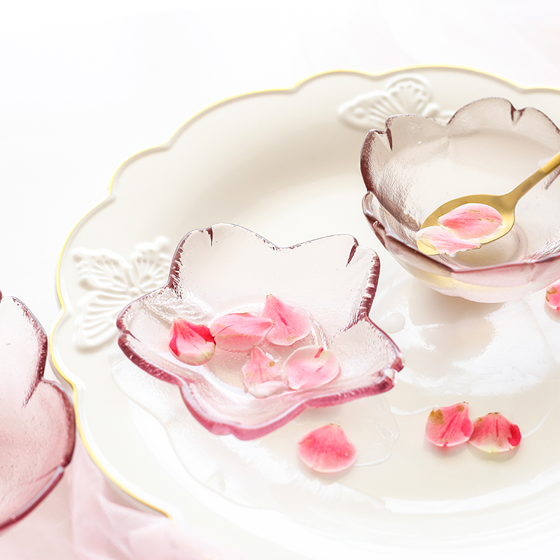 Cooking plate Creative Japanese cherry blossom flavor plate Glass plate Pink sauce plate Vinegar plate Chopstick holder