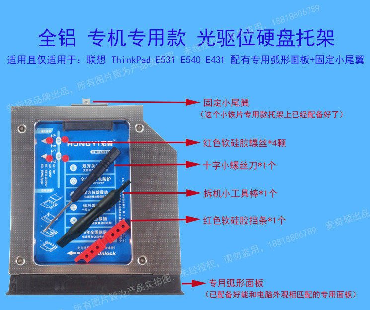 Suitable for Lenovo ThinkPad E531 E540 E431 CD-ROM drive hard drive bay with panel tail TS-03
