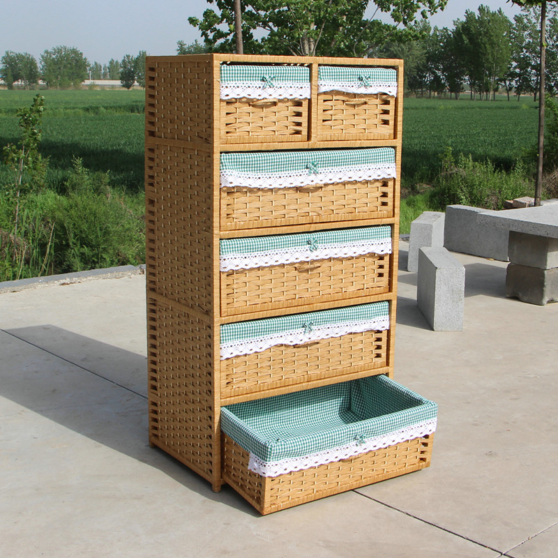 Rattan storage cabinet children's wardrobe five-layer drawer storage cabinet baby children's wardrobe large-capacity five-drawer cabinet