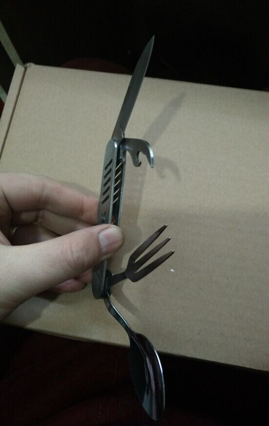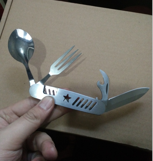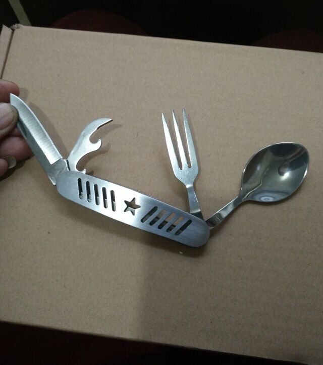 New here! Special price fishing friend travel good partner No. 304 stainless steel single soldier field multi-functional tableware