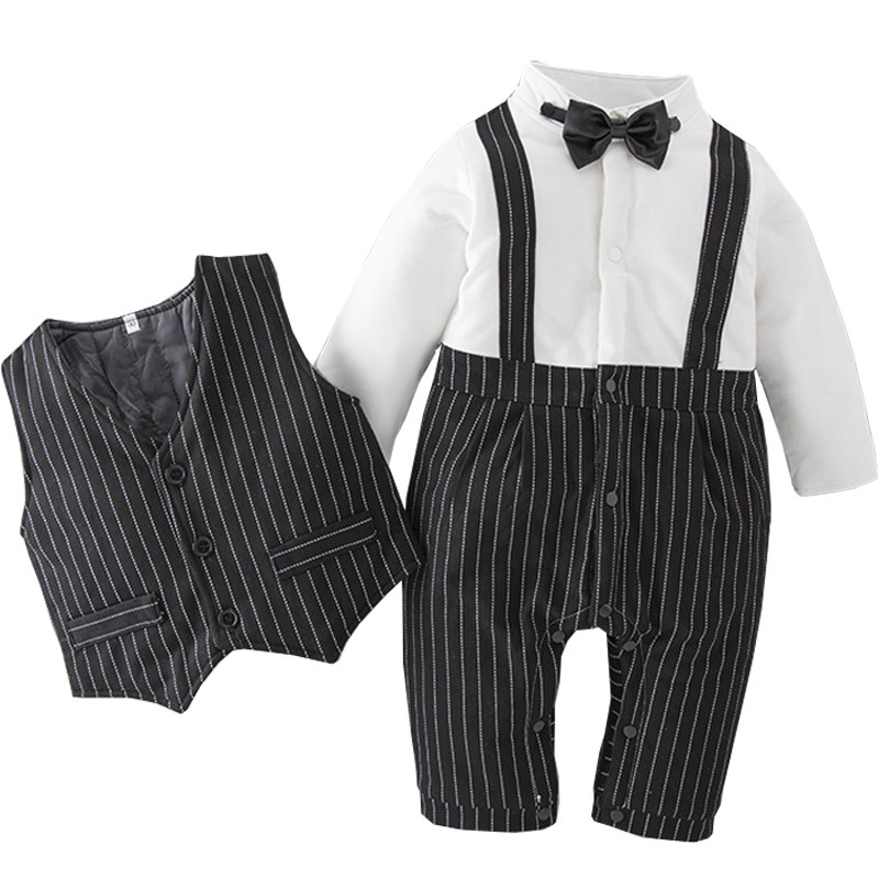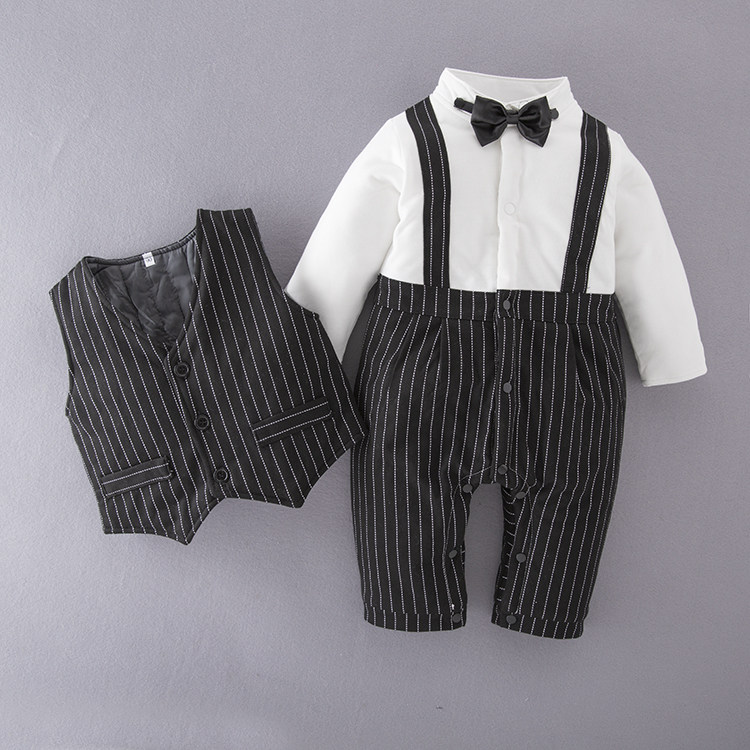 Winter baby khae male baby thickened gentlemen's gown with even body clothes, full moon gown jacket cotton birthday suit