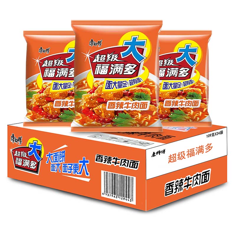 Master Kong instant noodles Super Fu Mando spicy beef noodles 102g24 bag instant noodles whole box