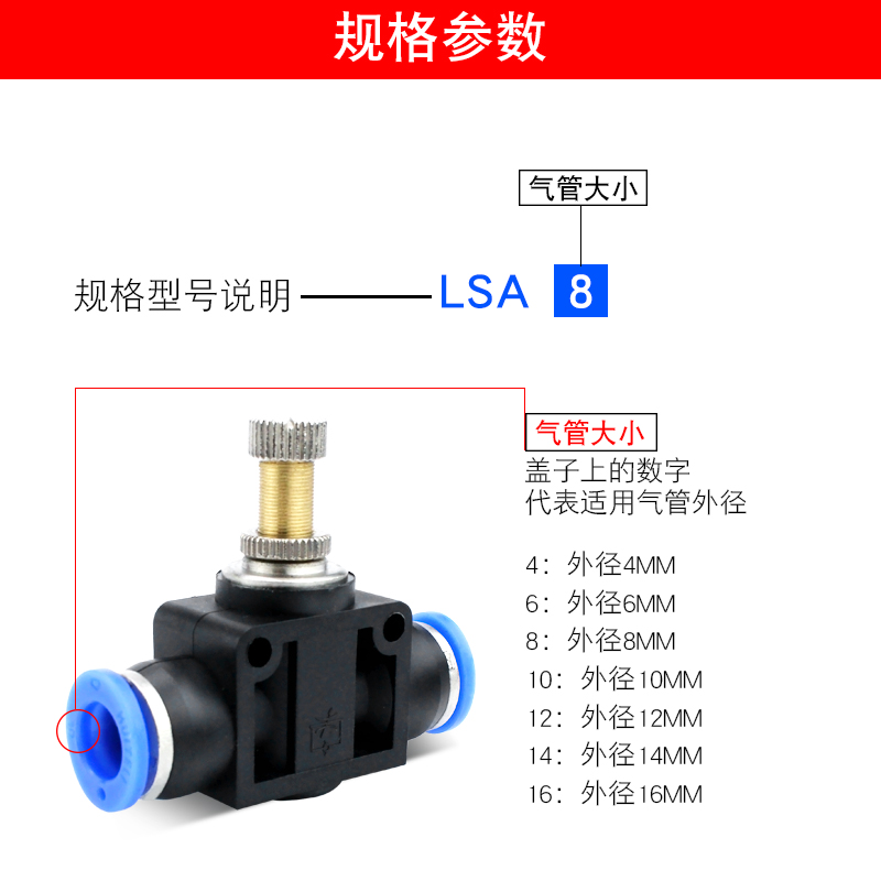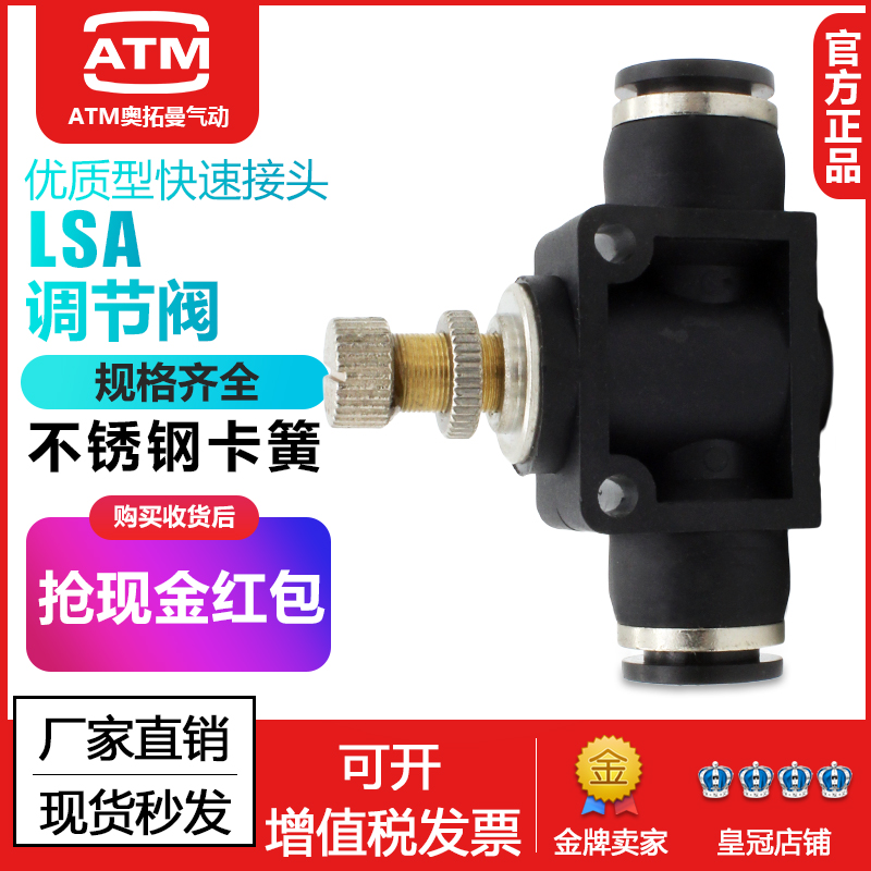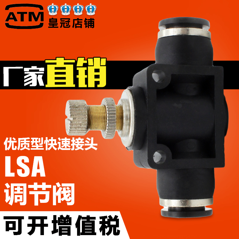 PA tracheal black quick quick-plug adjustment connector limited flow valve LSA8 4 6 10 12mm pipe throttle valve