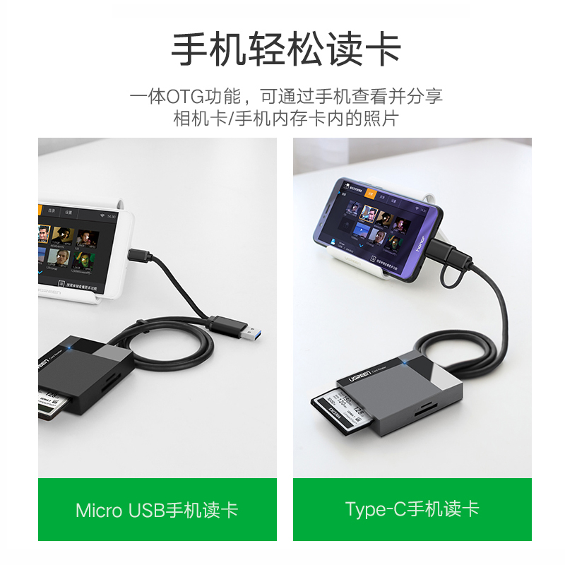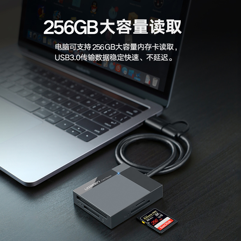 Green Typec card reader mobile phone PC dual use sD card TF multi-in-one camera memory card logger attendance card microSD card data download usb3 0 height