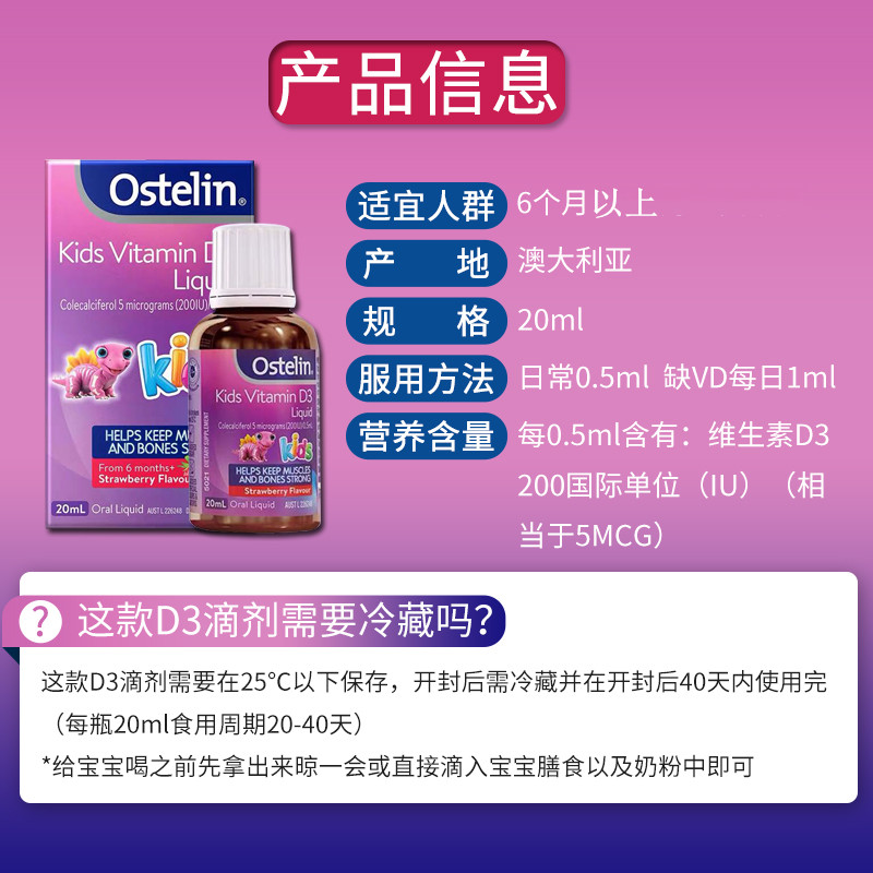 Australia Ostelin Osterlin infant liquid vitamin D VD drops 20ml strawberry flavor
