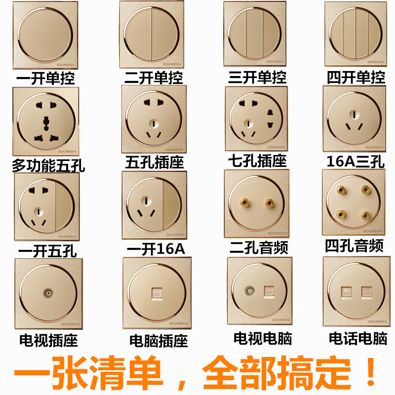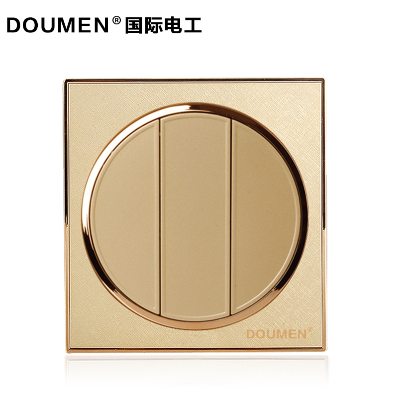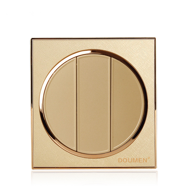 International Electrician Champagne Golden Round Switch Socket Package Triple Double Cut Switch Panel 86 Type Three Open Double Cut