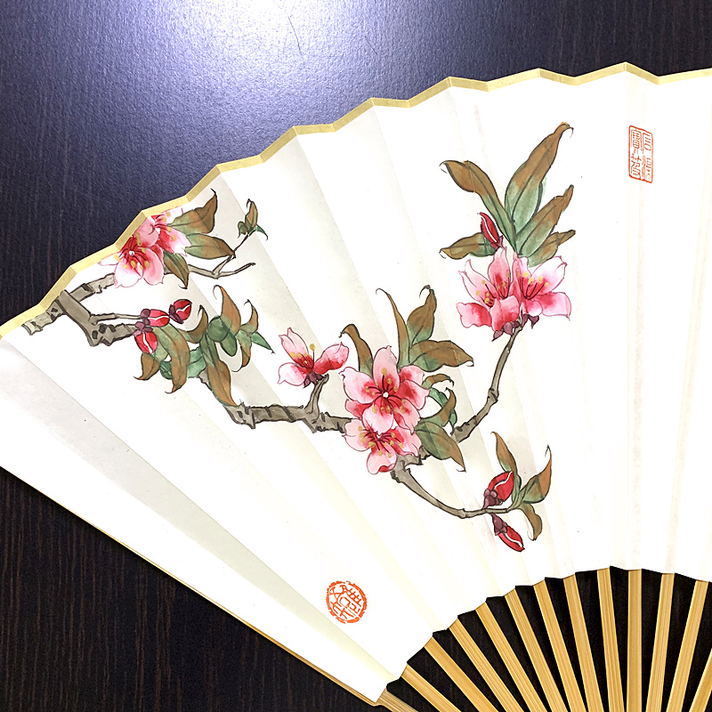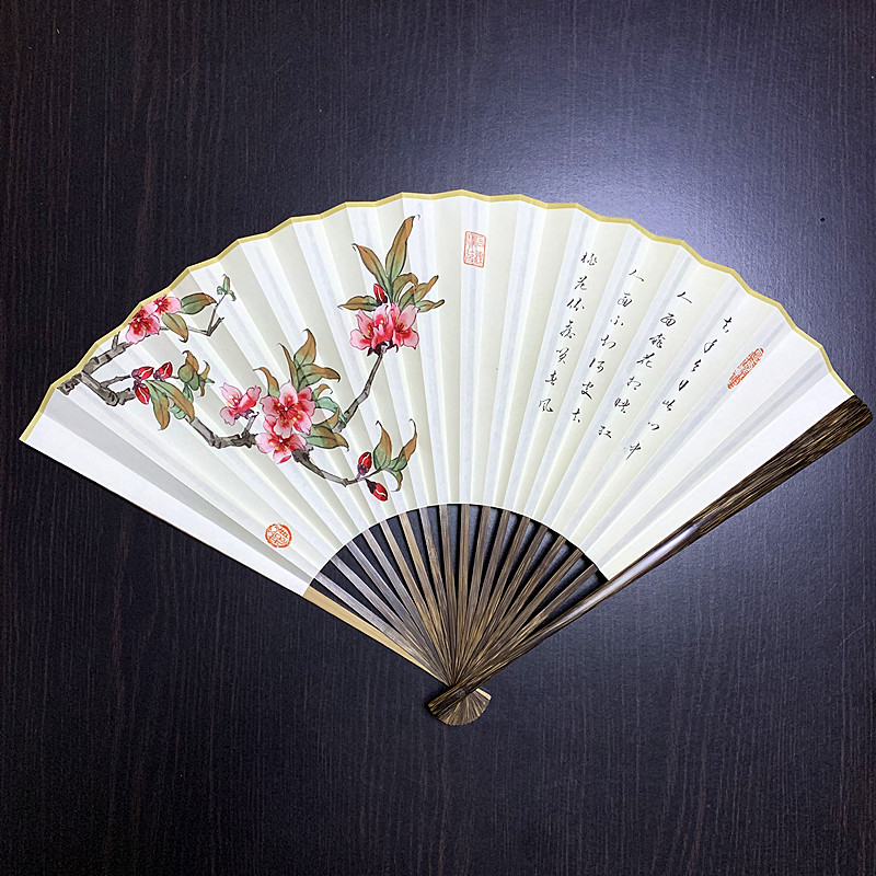 95-inch painted peach blossom fan (without fan bone), 95-inch handmade Yuzhu fan bone, painted fan, 95-inch full brown bamboo fan, painted fan, 95-inch Seiko Yuzhu, painted fan