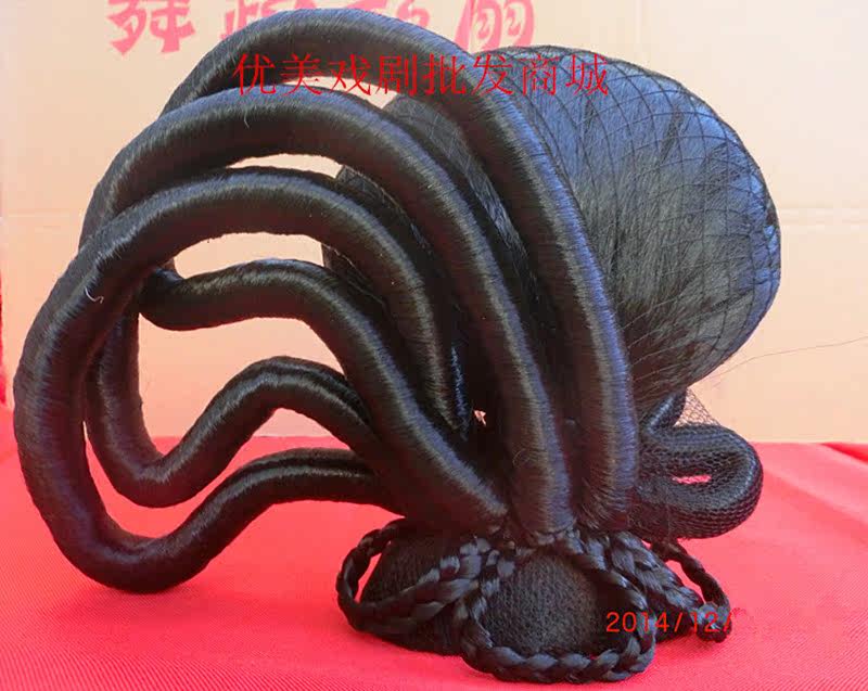 Direct selling partial phoenix bun ancient costume hair straight bun Peking Opera headdress Yue Opera matchmaker headdress Drama wig partial straight bun