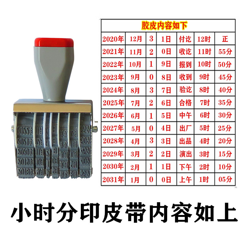 Hour stamp Medium time stamp Old version Large time stamp New version Large time stamp Digital time stamp Small stamp red, blue and black Big stamp Red, blue and black stamp black