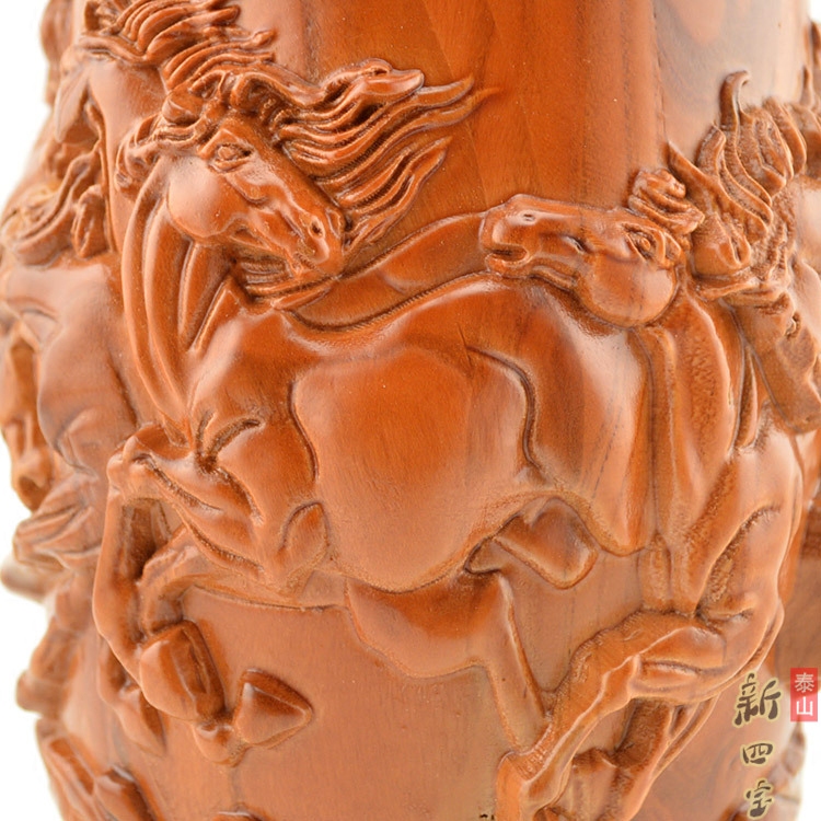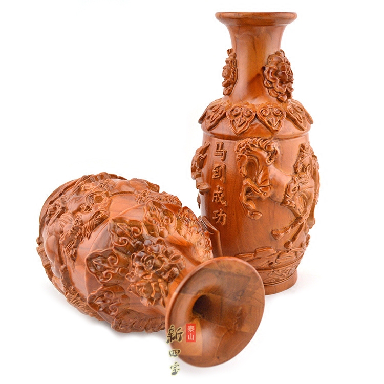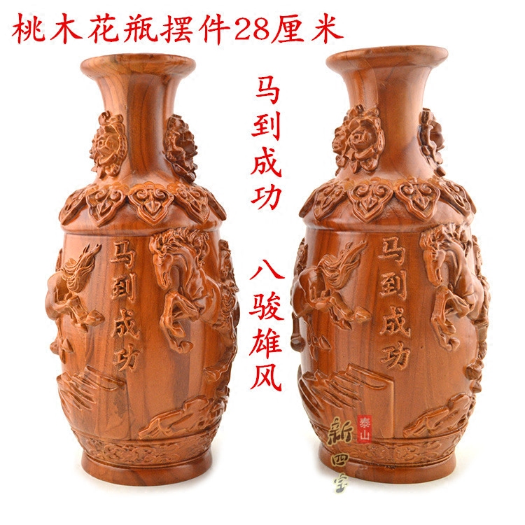 Authentic Peach Wood Swing Piece Vase Horse to Success Eight Majestic Wind Crafts Home Living Room Furnishing Wedding Opening Gift