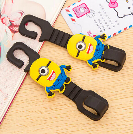 Korean cartoon car hook seat storage creative little yellow man car seat back hook seat hook 2 packs
