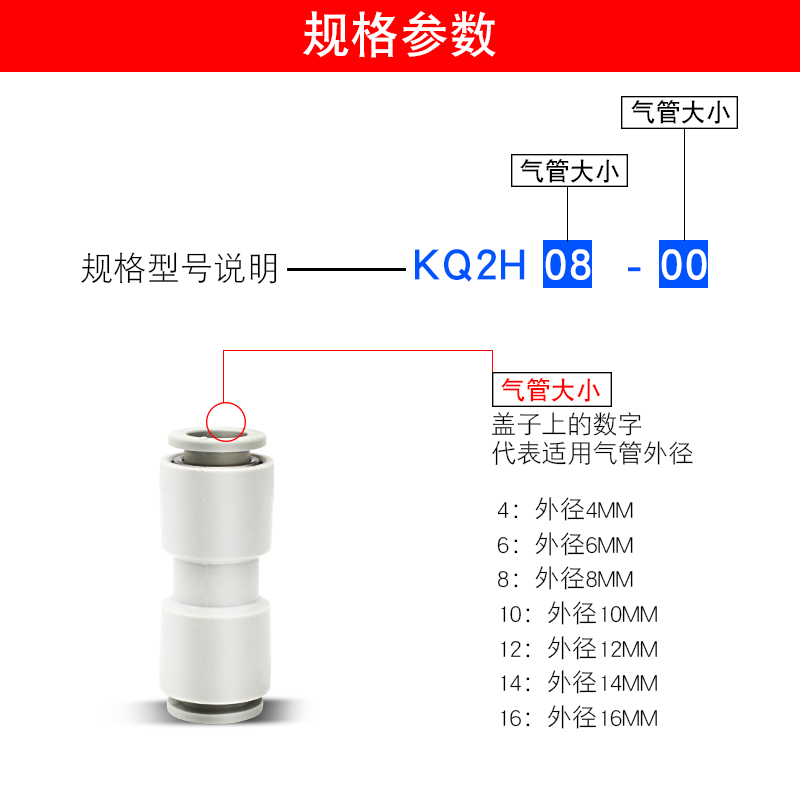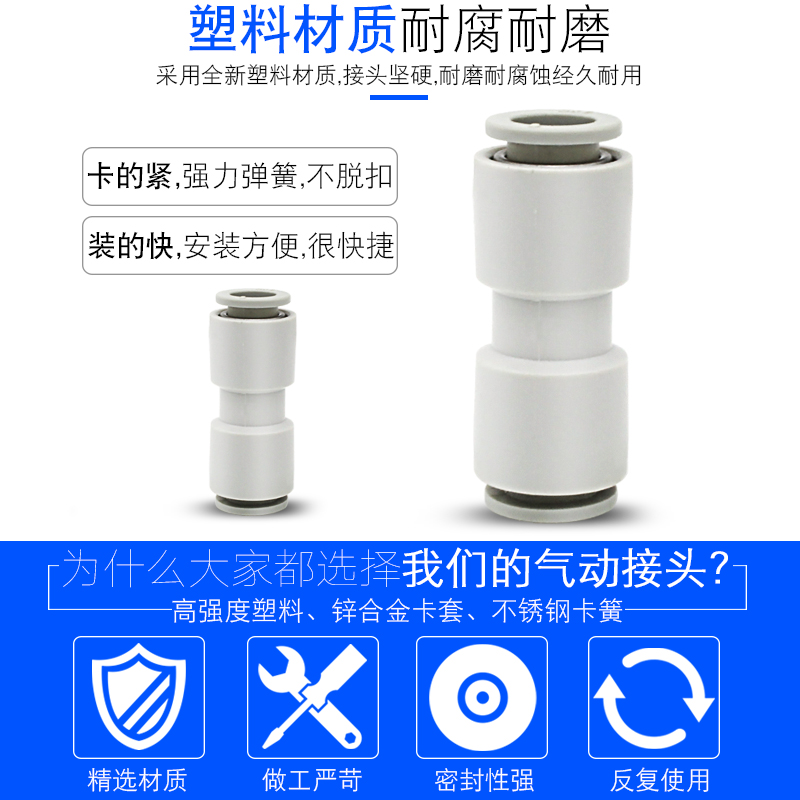 Pneumatic plastic reducer through air pipe quick connector KQ2H04 06 08 10 12-00-06-08-10