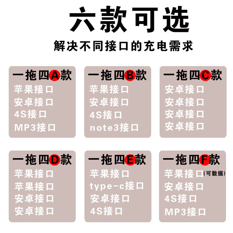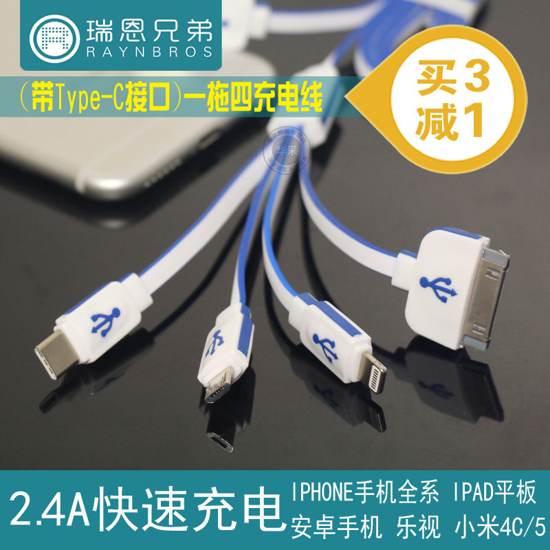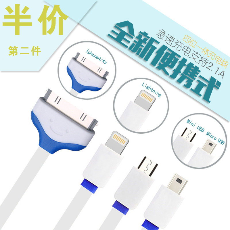 Multifunction One drag four data lines Android Apple MP3 trapezoidal connector Four-in-one charging line USB on-board universal 10% four-way with old models Samsung NOTE3 mobile phone long portable short