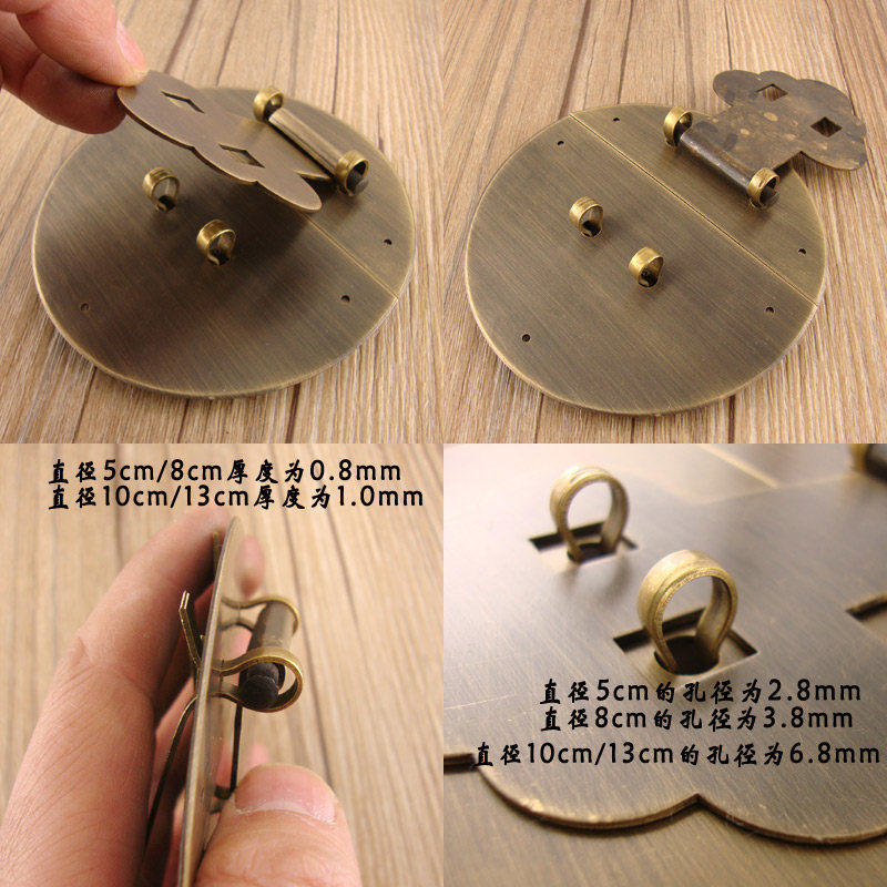 AD012 Round Lock - Closed Chinese Copper Box Closed 8CM Antique Brass Wooden Case Hardware Accessories Pure Bronze Round Round Brass Circular Brass Cell Copper Round Roll Brass Cover Case Brass Cover Accessories Brass Cell Round Round Roll Brass Roll Brass Cover