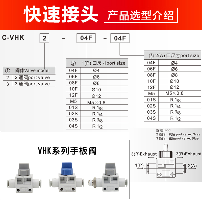 Pneumatic hand plate valve manual switch vent valve VHK2 VHK3-04 06 08 10 12F trachea connector