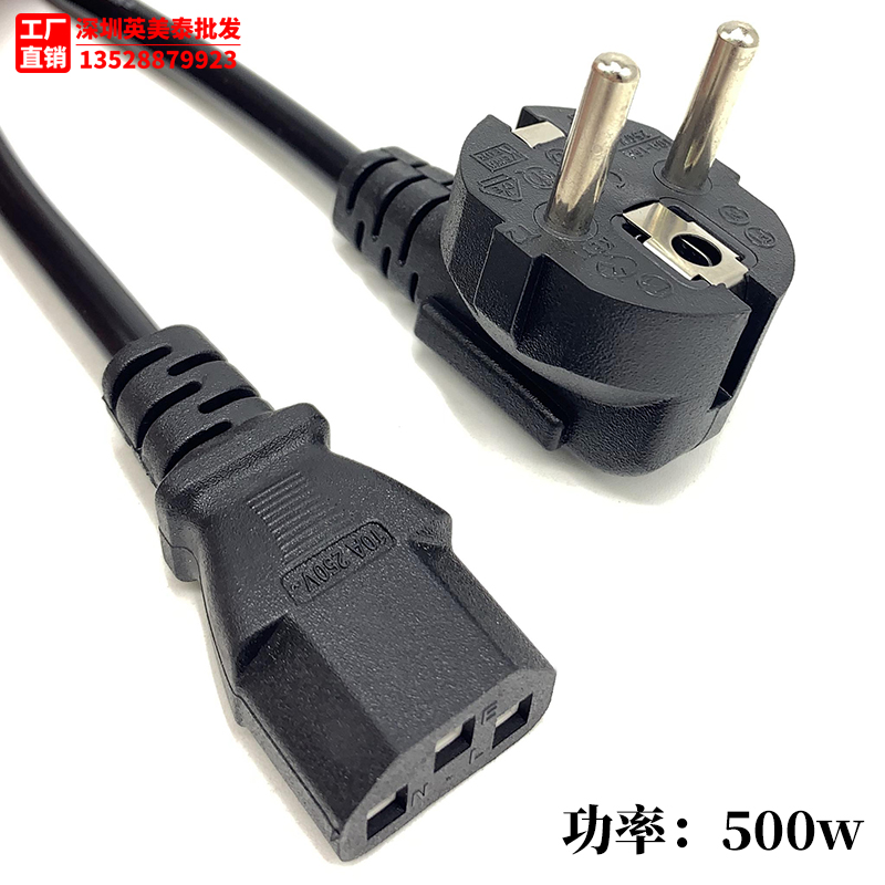 French wire 3-core 075 square three-hole character 15 meters European standard European standard power cord plug wire