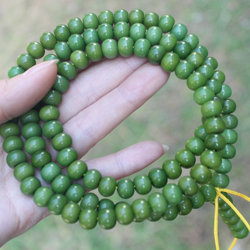 Natural weathered dyed bodhi root apple round green bodhi 108 with 6 beads