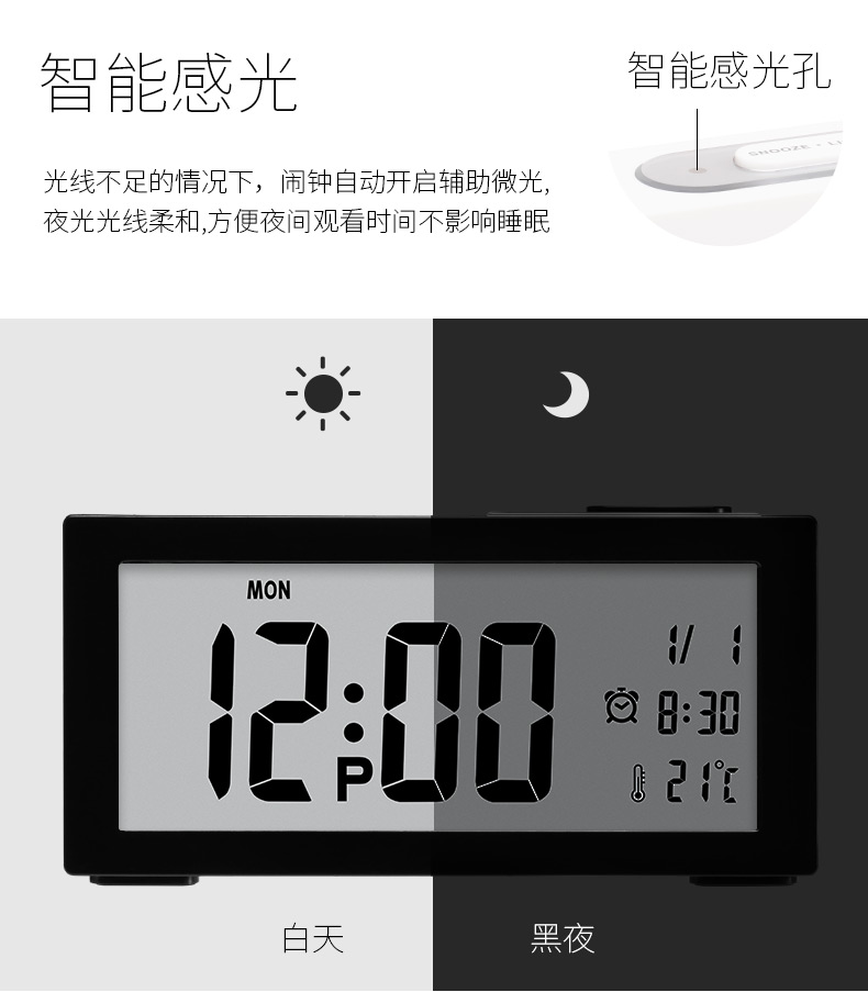 Student modern simple digital clock Children's luminous silent alarm clock Bedroom bed head LED student electronic clock
