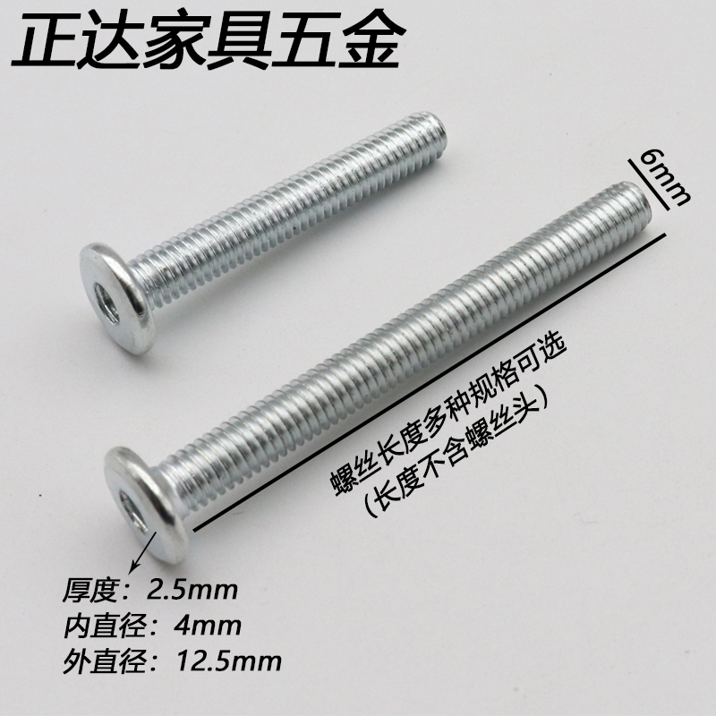 Furniture connector furniture screw pounded flat head hexagonal screw Baby crib screw M6