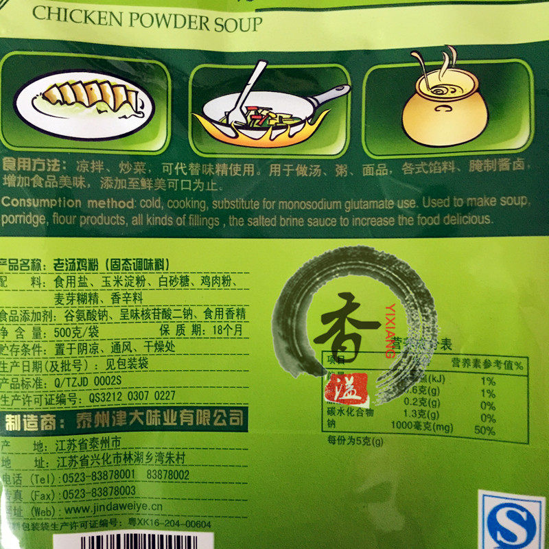 Tsu Great Old Soup Chicken Powder 500g Commercial Fresh Chicken Powder Cool Mix Sautlet to make a soup filling and add the fragrance and freshness