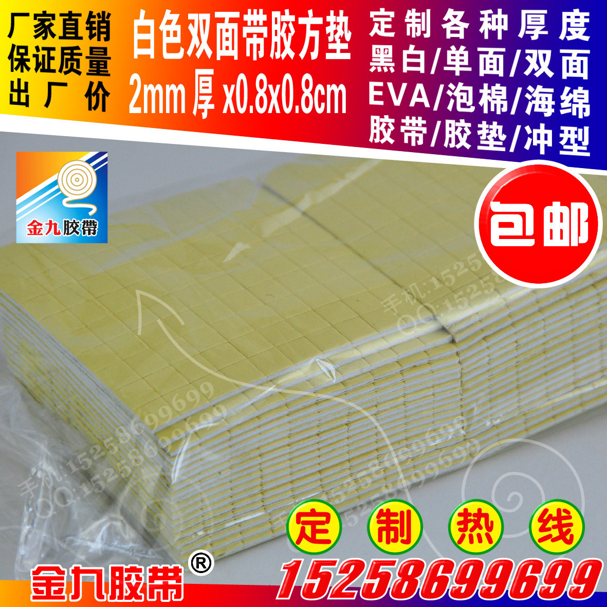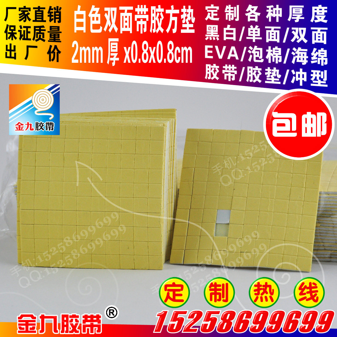 White EVA foam sponge double-sided tape hook adhesive tape 2mm thick 0 8cm square pad strong adhesive 100 grains per edition