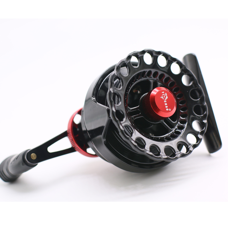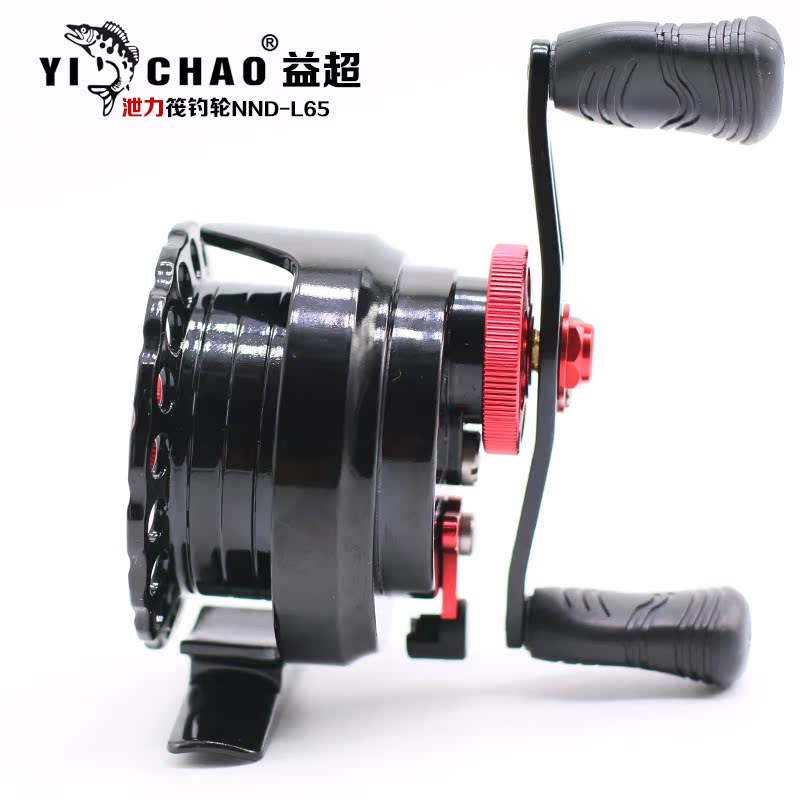 The direction of the handle of the fishing wheel: