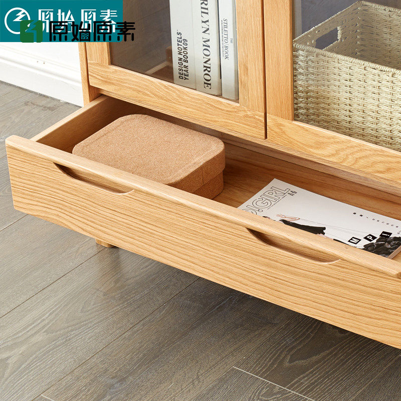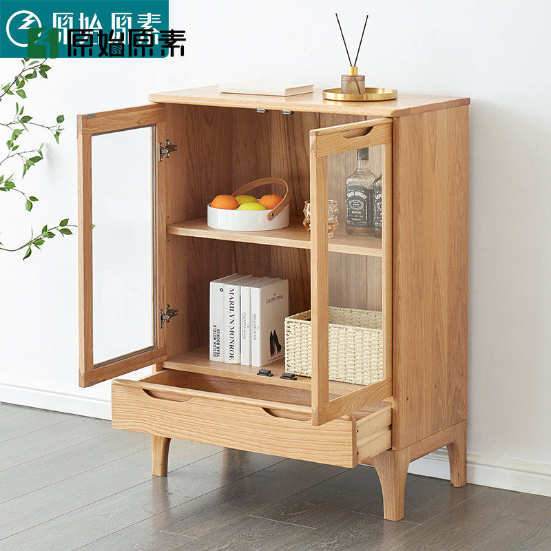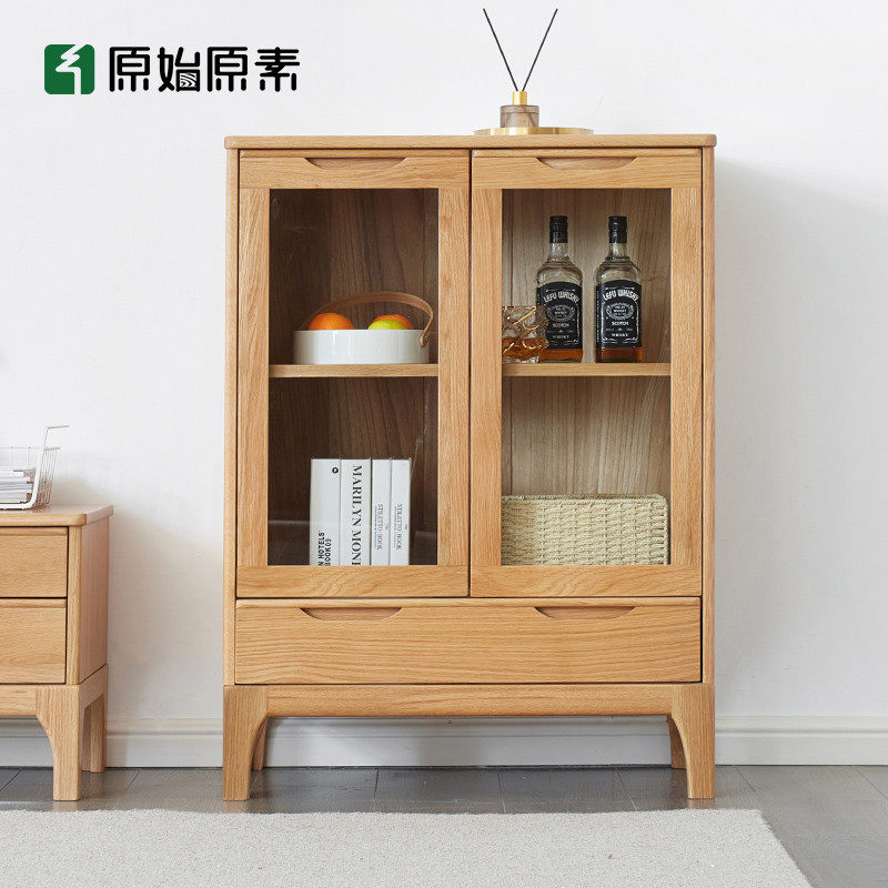 Special offer original all solid wood glass door dining cabinet modern minimalist oak dining room two-door side cabinet A7102