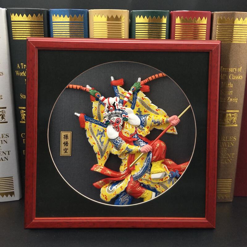 Oriental craft Beijing Opera Facebook pendant drama characters pose square solid wood glass photo frame to send gifts to foreigners