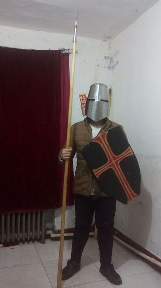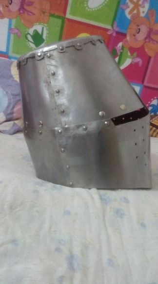 Medieval knight armor. Crusader Barrel Helmet's European Crusader Helmet