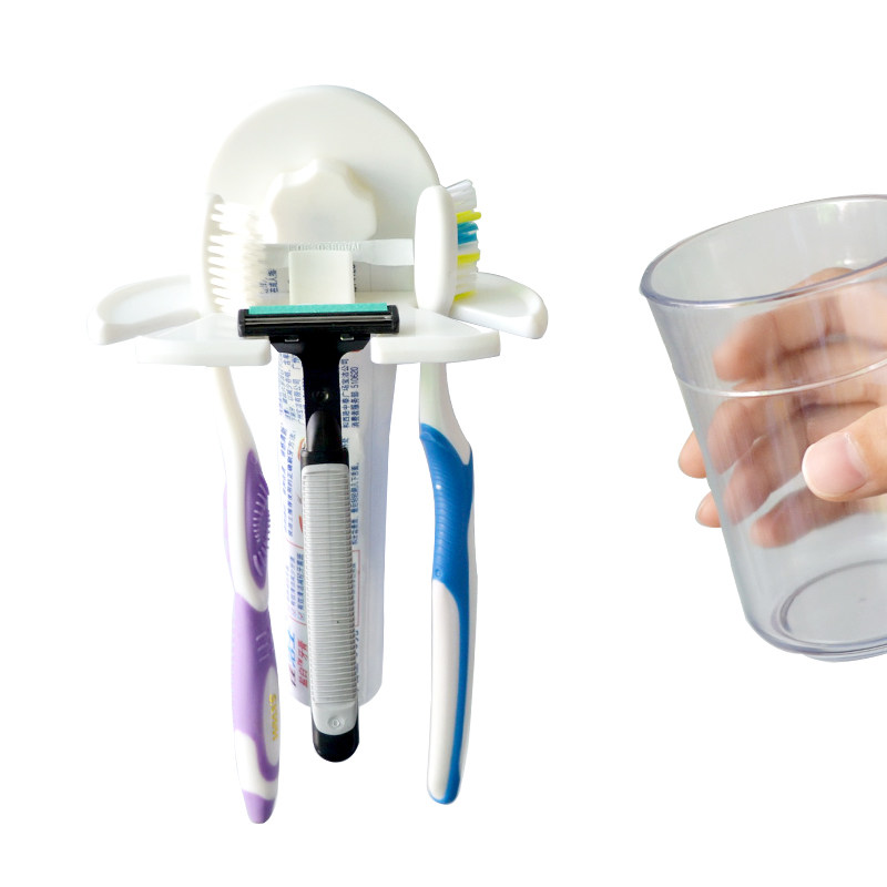 Meike creative wall-mounted suction cup paste toothbrush holder multi-functional mouthwash cup shelf suction wall-type toothpaste storage rack