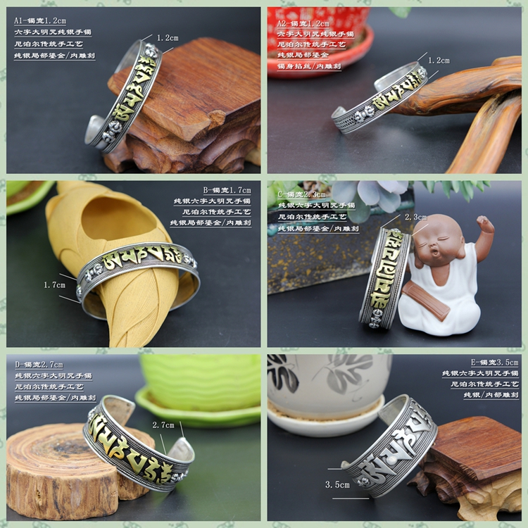 Bracelet Bracelet Jewelry Bracelet Jewelry Six-Character Great Mantra Six-Character Mantra Sterling Silver Nepalese Handmade